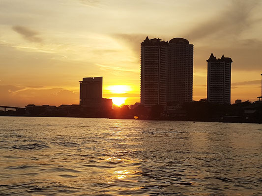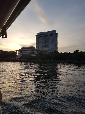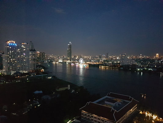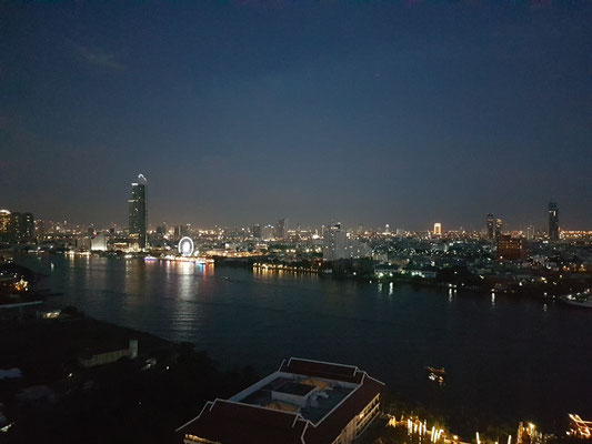Wir haben es tatsächlich geschafft und sind um 15:00 Uhr Ortszeit Endlich in Bangkok gelandet. Mit dem Rail Link, dem Skytrain und dem Shuttleboot ging es dann in unser Hotel. Das ist echt traumhaft! Wir haben ein tolles Zimmer und der Ausblick auf den Chao Phraya ist unbezahlbar!