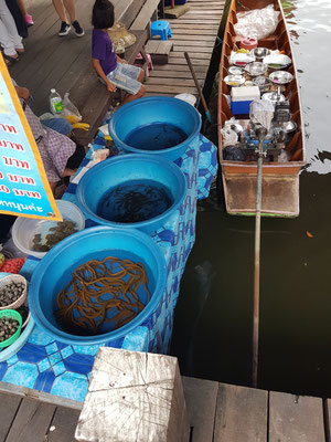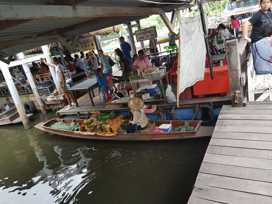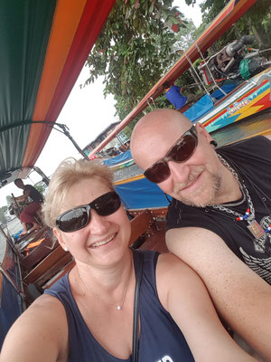 Weiter ging es dann gut gesättigt mit einem Longtailboot die Klongs, also die Wasserstraßen von Bangkok erkunden. Total schön! Wir haben einen Stopp an einem schwimmenden Markt gemacht und hatten auch Zeit diesen zu erobern 😁.