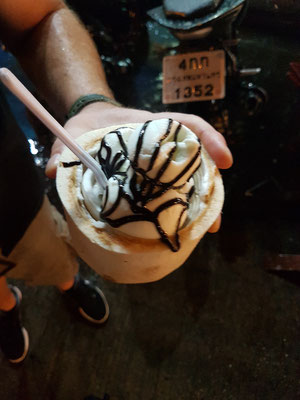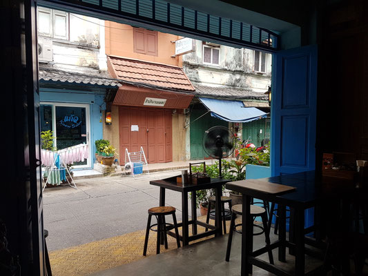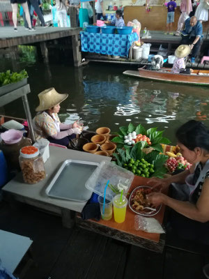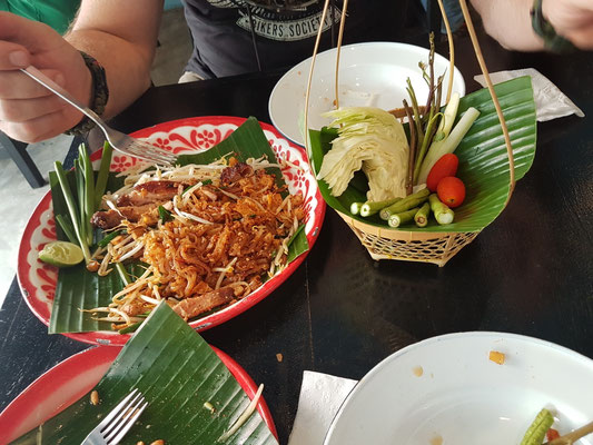 Heute haben wir das Frühstück mal ausfallen lassen und sind nach dem ausschlafen gleich los! Die erste Stärkung gab es bereits nach dem Verlassen des Shuttlebootes 😉. Ein kleines Restaurant in einer Seitenstraße mit leckerem Thai-essen. Mein absolutes Lieblingsessen ist Som Dum, ein grüner Papayasalat. Peter steht auf die leckeren Suppen.