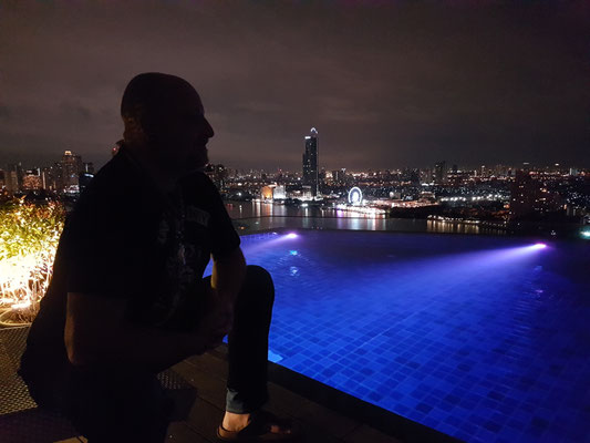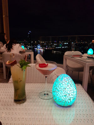 Zum Abschluss des Tages gönnten wir uns noch einen Cocktail in der Skybar mit super Blick auf Bangkok.