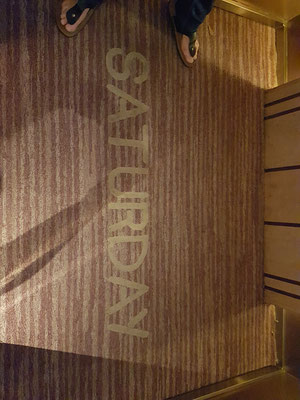 PS: Die wechseln in unserem Hotel tatsächlich täglich den Teppich in den Fahrstühlen. Immer mit den entsprechenden Wochennamen drauf 🙈🤣.