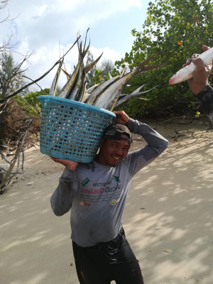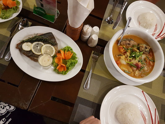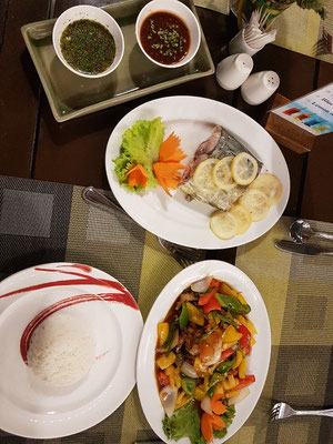 Zum Abendessen hat uns der Koch unseres Hotelrestaurants den Fisch, den Peter gefangen hat, auf vier verschiedene Arten zubereitet. Wir haben uns diesen zu sechst schmecken lassen, war wirklich sehr lecker 😋. Ok, für zwei gab's Spaghetti 😉 (Liebe Grüße, es war ein toller Abend mit Euch). Ein krönender Abschluss unseres Aufenthaltes in Khao Lak. Leider heißt es jetzt wieder Koffer packen, aber Morgen geht es ja weiter nach Koh Yao Noi ☺.