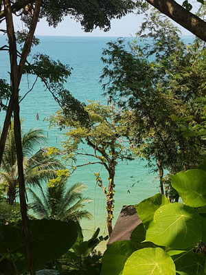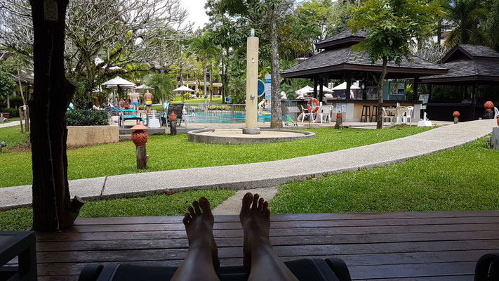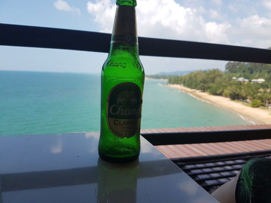 Ich war am Vormittag mal wieder zur Thaimassage und danach war erstmal Erholung am Pool angesagt. Irgendwann wollte ich mich etwas bewegen und bin spontan 6,5 km zu einem Lokal mit sehr schöner Aussicht gelaufen. Immer am Strand lang. Da gab's ein kühles Bier mit Blick auf das Meer und zurück ging es bei 32 Grad im Schatten mit dem Taxi.