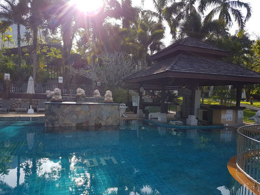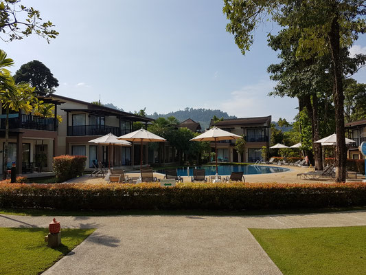 Kurz zu unserem Hotel in Khao Lak. Wir waren im The Leaf on the Sands. Eine sehr schöne kleinere Hotelanlage mit mehreren maximal zweistöckigen Gebäuden und Bungalows, mit zwei Pools, einer Poolbar und einem Restaurant. Es liegt in zweiter Reihe zum Strand aber man kann in ca. 5 Minuten am Schwesterhotel vorbei direkt zum Strand laufen. Ansonsten liegt es sehr zentral und trotzdem ruhig. Diverse Einkaufsmöglichkeiten und Restaurants befinden sich in unmittelbarer Nähe.