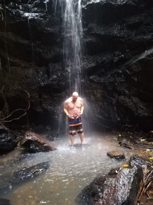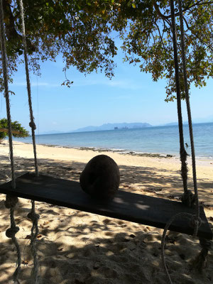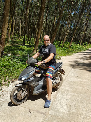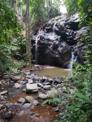 Gestern haben wir uns für die beiden letzten Tage einen Roller gemietet und die Insel unsicher gemacht. Erst ging es an den Strand, dann haben wir uns eine Kautschuk-Plantage angesehen und dann gab's ne Abkühlung in einem Restaurant direkt am Strand! Nach ner kleinen Siesta in der Hängematte ging es dann durch den Dschungel zu einem Wasserfall. Endlich mal kaltes Wasser 😉.