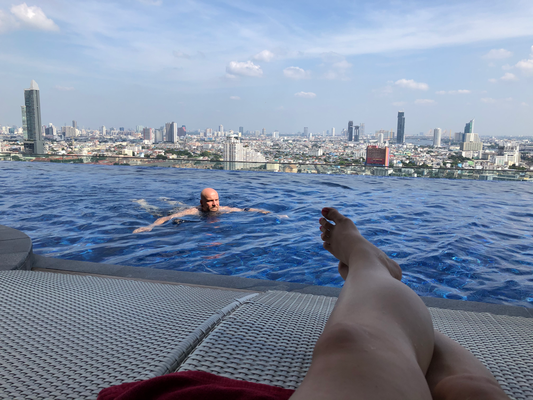 Airport Raillink, dem Skytrain und dem Shuttleboot zum Hotel gefahren. Dort angekommen haben wir ein tolles Zimmer mit Aussicht bezogen! Nach einer kurzen Dusche sind wir dann gleich in den Pool