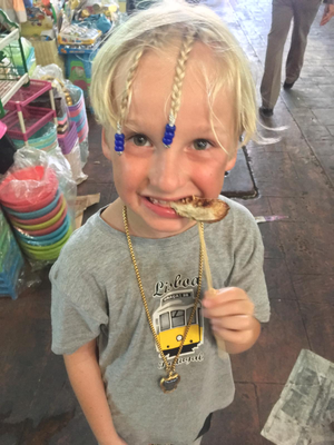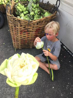 durch die Klongs von Bangkok. Danach ging es direkt weiter zum Flower-Market. Hier haben wir mit Blumen gebastelt und gegrillte Bananen probiert. Mit vielen neuen Eindrücken sind wir dann mit dem