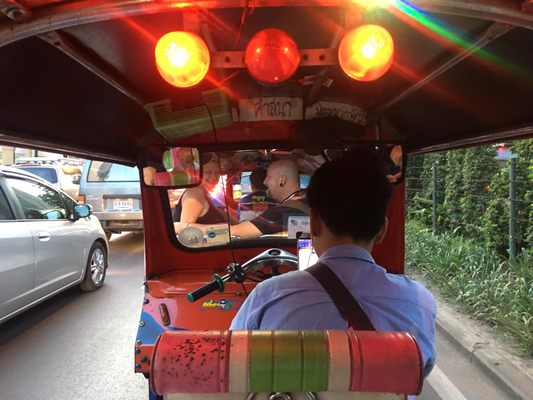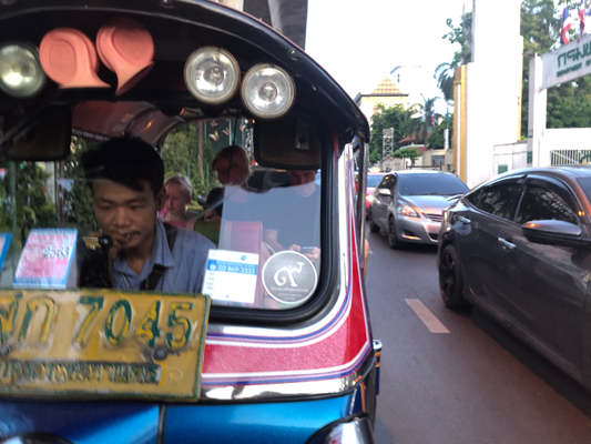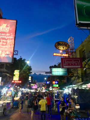 ausgenutzt werden 😉. Am Nachmittag ging es dann zum shoppen ins MBK, wobei wir erst an den letzten Tagen zuschlagen werden. Weiter ging es mit zwei Tuk-Tuks zur Khao San Road. Als Backpacker muss man