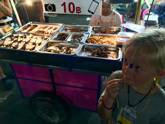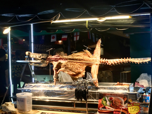 wohl mindestens einmal pro Thailandaufenthalt hier sein 🤣. Neben einigen Cocktails 🍹 (very strong 😂) gab es auch Maden zum probieren. Das Krokodil am Spieß haben wir dann doch lieber ausgelassen.