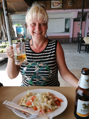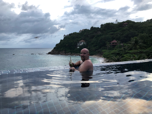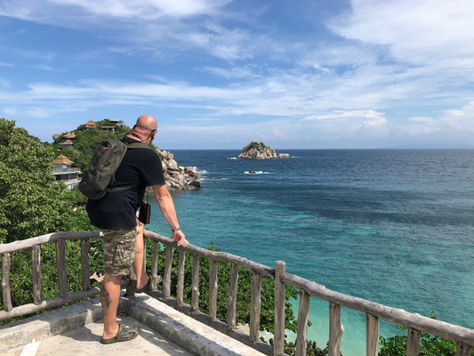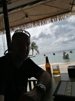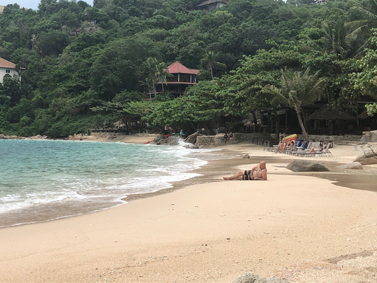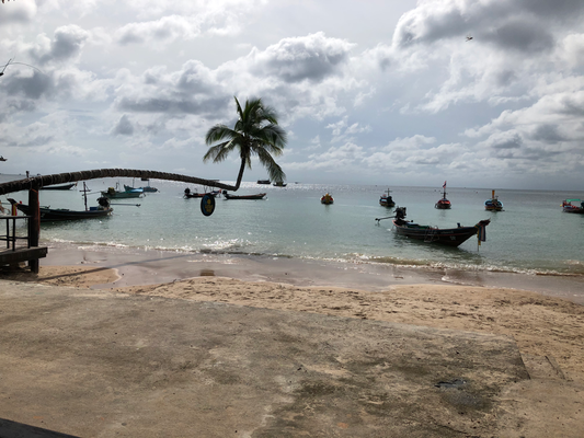 Zuerst gab's heute nach dem ausschlafen ein leckeres Frühstück am Strand. Anschließend ging es gleich die erste Runde schnorcheln. Das ist echt toll. Nur 10 m ins Wasser und das Hausriff beginnt. Große, bunte Papageienfische, Kofferfische und hunderte Schwarmfische haben wir gesehen. Dazu diverse Seegurken. Übrigens hat Peter auch sein Halloween-Kostüm gefunden 😂. Nach einer Runde im Pool und durch unser Resort wollten wir dann auch die Umgebung erkunden. Also haben wir uns einen Roller gemietet und sind los gefahren. Dabei merkt man einmal mehr (gefühlt steigt man jeden Tag tausende Treppenstufen im Resort 😱) wie bergig und steil die Insel ist. Wir sind dann am Sairee Beach gelandet. Hier haben wir einen ausgiebigen Spaziergang am Wasser gemacht und in einem Strandlokal lecker gegessen. Nach einem kurzen Einkauf im Seven Eleven, ging es dann zurück und wieder an den Strand zum schnorcheln. Bei einem Cocktail an der Poolbar ließen wir dann den Tag noch Mal Revue passieren.