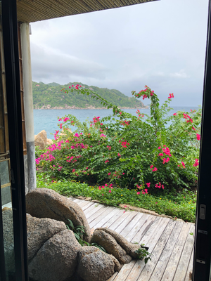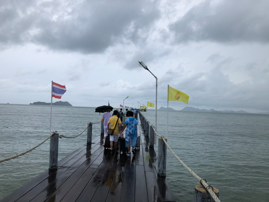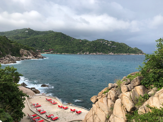 Heute hieß es zeitig aufstehen und ab zum "alten" Flughafen in Bangkok. Berlin wäre vermutlich froh, wenn überhaupt irgendein Flughafen so groß und modern wäre, wie dieser "Alte" von Bangkok 😂. Weiter ging es mit Air Asia nach Chumphon, von da mit dem Bus zum Hafen und dann mit der Fähre (ein Speed-Katamaran) nach Koh Tao. Dank starkem Wind, Gewitter und dadurch starkem Seegang war die Fahrt ein bisschen wie Achterbahn fahren. Das führte dazu, dass etliche Fahrgäste mit der Seekrankheit zu kämpfen hatten. Uns hat es aber zum Glück nichts ausgemacht 😅. Unser Hotel auf Koh Tao ist das Sai Daeng Resort. Super schön auf einer felsigen Landzunge im Meer gelegen. Man kann an beiden Seiten super schnorcheln und soll dabei wohl sogar Riffhaie beobachten können (ich Frage mich allerdings, wer da wen beobachtet 😱, na wir werden sehen).