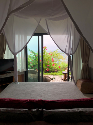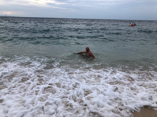 Unser Zimmer ist toll. Wir schauen vom Bett aus aufs Meer. Traumhaft 😍. Natürlich mussten wir auch noch kurz ins Meer hüpfen bevor es ins Strandrestaurant zum Abendessen ging. Den Rest des Abends haben wir Dank sehr gutem WLAN Fußball geschaut (hier muss ich auf Wunsch eines einzelnen Herren ergänzen: wir haben natürlich den Größten der Welt beim Kicken zugesehen 🔵⚪️🔵⚪️🔵!) und sind ziemlich erledigt zeitig schlafen gegangen.