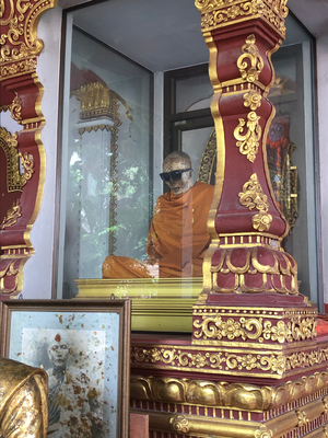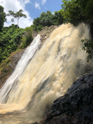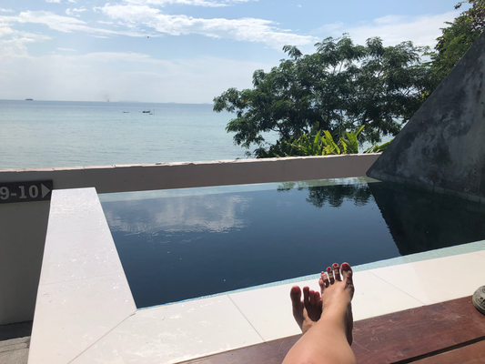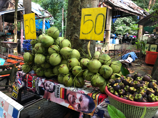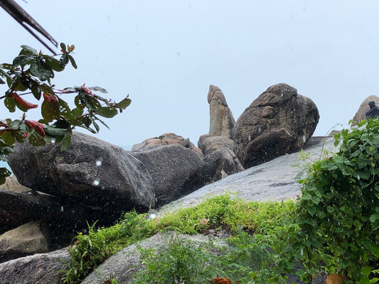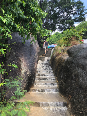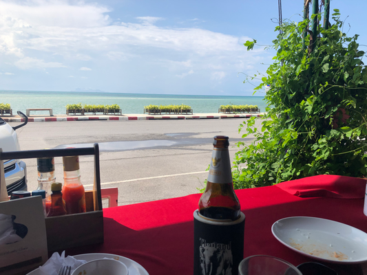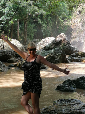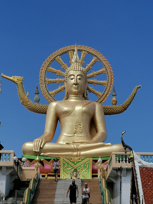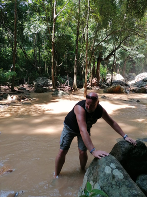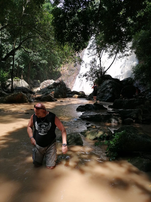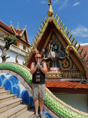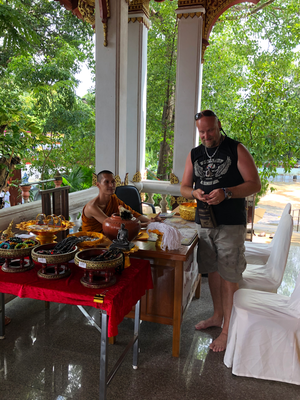 Nach einem entspannten Frühstück direkt am Strand ging es auf eine private Inselrundtour. Wir haben uns den Big Buddha und den mumifizierten Mönch angesehen. Hier hatte Peter ein Erlebnis der besonderen Art! Er hatte eine Audienz bei einem Mönch. Als dieser sein Amulett mit dem Garuda gesehen hat, sind beide ins Gespräch gekommen und zum Abschluss hat der Mönch ihm tatsächlich ein weiteres Garuda-Amulett geschenkt. Außerdem haben wir an diversen Aussichtspunkten gestoppt und uns wurden die schönsten Strände gezeigt. Dann waren wir bei den Großmutter- und Großvater Felsen. Diese haben die Form von menschlichen Genitalien. Den Großvater erkennt man auf den ersten Blick, die Großmutter erst bei genauerem hinschauen 😂. Hier wurden wir auch von einem ordentlichen Regenguss überrascht, der die Treppe in einen kleinen Wasserfall verwandelt hat. Anschließend ging es zum großen Wasserfall. Durch den Regen führte dieser ordentlich Wasser, so dass man leider in dem Becken nicht baden konnte. Eine kleine Trekkingtour durch den Dschungel und das Flussbett war aber möglich. Zum Abschluss gab es noch ein leckeres Essen am Strand. Anschließend ging es zurück zum Hotel zum relaxen im Pool!
