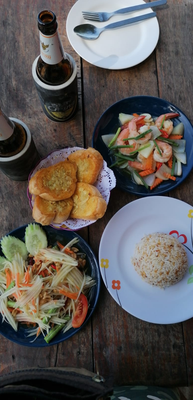 Strand, Cocktails, Sonne, Meer! Das erklärt so ziemlich diesen Tag. Mit dem Roller ging's zum White Sand Beach und dann war ein ausgiebiger Strandtag angesagt mit lecker Essen und Cocktails und viel chillen! 😁 Ist zur Abwechslung auch mal ganz schön 😂. Unser Essen war ziemlich knoblauchlastig 😉, richtig leckeres Knoblauchbrot, Knoblauchreis, Garnelen in Knoblauch und dazu natürlich den obligatorischen Papaya-Salat.