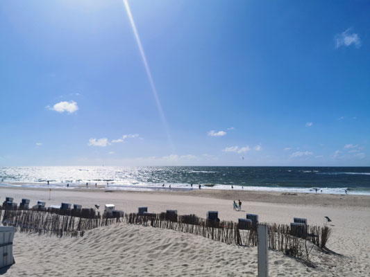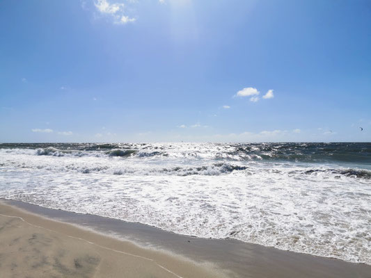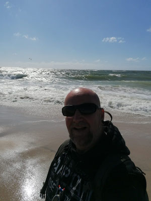 Beim wach werden hörten wir schon den Sturm und Regen draußen, also hieß es noch einmal umdrehen und ausschlafen. Nach einem ausgiebigen Frühstück haben wir einen chilligen Vormittag verbracht und dann Fußball geschaut. Leider hat es der 1. FC Magdeburg 🤍💙🤍💙 nicht geschafft 3 Punkte zu holen, so dass es weiter heißt zittern und auf den Klassenerhalt hoffen. Am frühen Nachmittag klarte das Wetter dann auf und die Sonne kam raus. Also ging es zu einem Strandspaziergang an die See. Riesige Wellen und ordentlich Wind machen bei Sonne richtig Spaß 😊. Und vor allem, es war nicht eine Qualle mehr da (Peter haben die übrigens ganz schön erwischt 😱, aber wie sagt man so schön, wer nicht hören kann, muss fühlen 😉). Zum Abendessen gab's eine Pita von Habibi (sehr lecker und wirklich zu empfehlen) und ein Schauspiel der Surfer und Kiter im Sonnenuntergang auf dem Meer. Wir hatten Glück und konnten auf der Promenade einen Strandkorb ergattern, so dass wir den restlichen Abend hier verbracht haben!