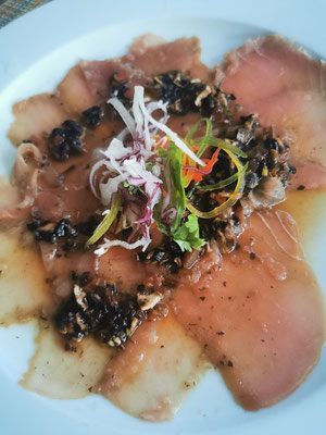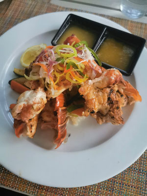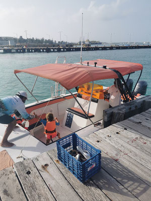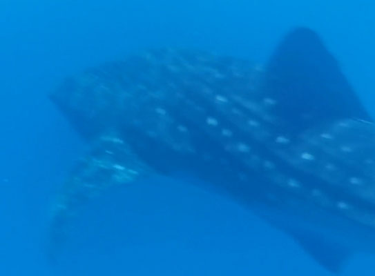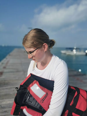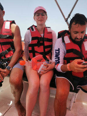 Auf diesen Tag habe ich den ganzen Urlaub hingefiebiert. Wir waren mit Walhaien schnorcheln und es war einfach nur toll. Erst sind wir mit dem Boot ca. 1,5 bis 2 Stunden aufs Meer rausgefahren bis zu der Stelle, an der sich in den Sommermonaten viele Walhaien aufhalten,weil sie dort durch das Seegras Unmengen an Plankton finden. Dort konnten wir dann zu ihnen ins Wasser. Immer 2 Personen plus ein Guide. Die Devise lautet gucken und nicht anfassen. Der erste Sprung ins Meer hat uns schon Überwindung gekostet. Es ist halt die Tiefsee und man sieht vom Boot aus nicht wirklich viel außer riesige schwarze Schatten. Aber wenn man einmal untergetaucht ist, dann ist es atemberaubend 😍. Das Wasser ist sooooo blau und die Walhaie so groß und friedlich. Man muss ganz schön schwimmen um an ihnen dran zu bleiben. Wenn sie keine Lust mehr haben, tauchen sie einfach ab in die Tiefe des Ozeans. Es war einfach toll und den nächsten Schnorchelgang konnten wir gar nicht abwarten. Die Walhaie die wir gesehen haben waren so zwischen 6 und 10 Meter groß. Echt beeindruckend 🙈. Nach einem kleinen Snack an Bord ging es dann wieder zurück. Auf dem Weg konnten wir dann noch fliegende Fische, Schildkröten und Delphine beobachten. Einfach nur schön. Angekommen sind wir am Playa Norte. Hier konnten wir uns etwas im Wasser treiben lassen, bevor es eine sehr leckere, vom Kapitän zubereitete Ceviche gab. Anschließend sind wir zusammen mit Phil, er ist aus Madeira, lebt in London und verbringt auf der Isla Mujeres seine 14tägige Quarantäne, da er beruflich für 3 Tage nach San Francisco muss (man kann die Quarantäne wahrlich schlechter verbringen 😂) und Anton und seinen Kids aus Trier (sie sind jetzt 6 Monate in Mexiko unterwegs gewesen während der Elternzeit!) noch ein, zwei kühle Bierchen trinken gegangen. Zum Abschluss des Tages gab's Lobster und Jacobsmuscheln für uns. Und dann sind wir erledigt aber glücklich ins Bett gefallen.