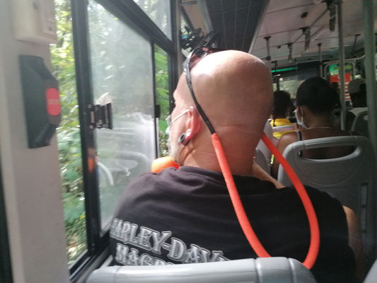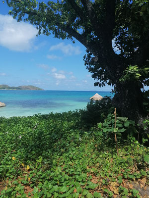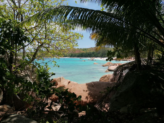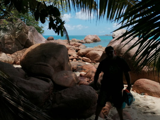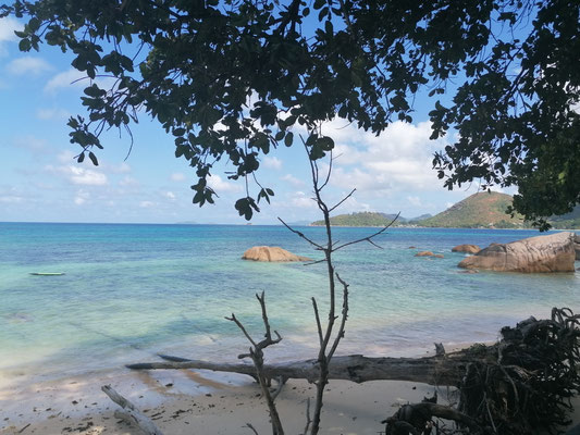 Heute sind wir vom Mount Plaisier zur Anse Lazio gewandert. Mit wunderschönen Ausblicken ging es durch den Dschungel. Am Anse Lazio ging es von Bucht zu Bucht zum Baden und Schnorcheln. Kleine Riffhaie konntean sehen. Am Nachmittag ging es mit dem Bus zurück und dabei sind wir einmal rund um die Insel gefahren. Und endlich konnten wir auf der Busfahrt die Coco de Mer live sehen. Auf der Terrasse haben wir dann noch die kleinen Flugzeuge beim Landranflug beobachtet. Morgen werden wir auch in so einer sitzen. Am Abend hieß es schon wieder packen, da wir morgen unsere Katamarantour starten.