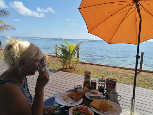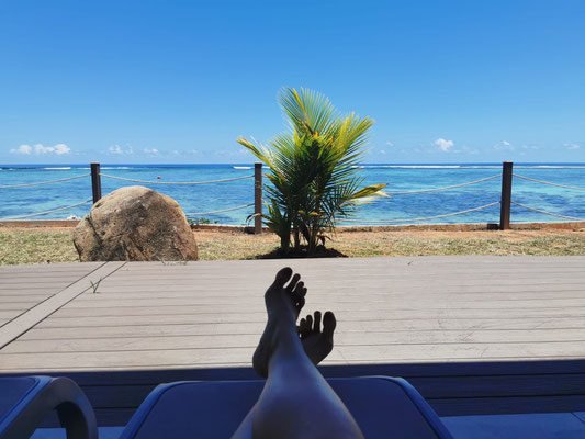 Nachdem wir gestern in unserer Unterkunft La Desirade auf Mahé angekommen sind, ist für die letzten Tage nur noch relaxen angesagt. Dass heißt, wir bewegen uns zwischen Bett, Terrasse, Strand, Kühlschrank und Dusche hin und her. 😂 Gott sind wir faul 🙈. Zumindest haben wir es abends noch zu einem Take Away in der Nähe geschafft. Ein ziemliches Abenteuer im Dunkeln auf extrem schmalen Straßen ohne Fußweg und Beleuchtung und mit tiefen Gräben und offenen Kanaldeckeln an den Seiten 😱. Ohne Kopf- oder Taschenlampe sollte man lieber nicht auf die Seychellen reisen 😂.