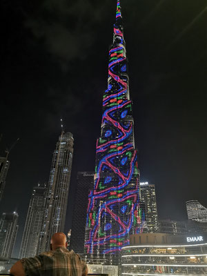 Nach einer kurzen Nacht im Flieger sind wir am frühen Morgen gut in Dubai gelandet. Wir sind ja mit Smartlynx geflogen. Ist halt ein günstiger Charterflieger mit sehr wenig Beinfreiheit. Aber wir hatten Glück und eine Dreierreihe für uns allein (obwohl der sonstige Flug ausgebucht war 😊). Die Einreise ging super schnell und unkompliziert. Unser Hotel ist das Rove Downtown und wir sehen von unserem Zimmer im 12. Stock direkt auf den Burj Khalifa. In 10 Minuten sind wir in der Dubai Mall und somit am Burj Khalifa und den Fontänen. Am Abend kann man hier tolle Shows und Lichteffekte bewundern. Wir waren essen im Restaurant Tribes. Hier sitzt man entspannt auf der Terrasse, kann lecker essen und dabei die Shows aus der ersten Reihe, ohne Gedränge ansehen. Es war ein gelungener Tag und wir sind gespannt, was uns in dieser Stadt noch alles erwartet.