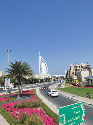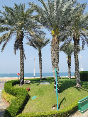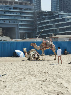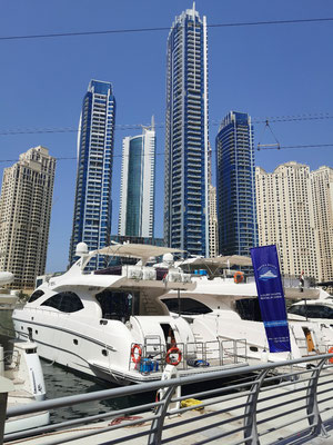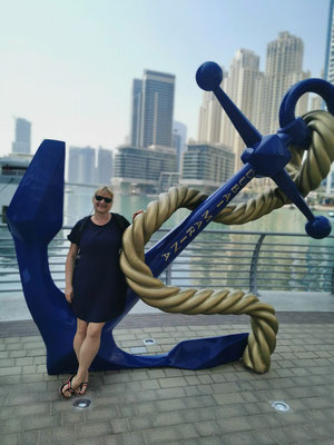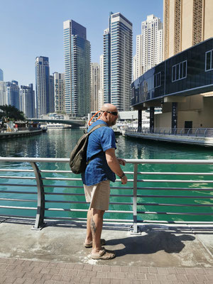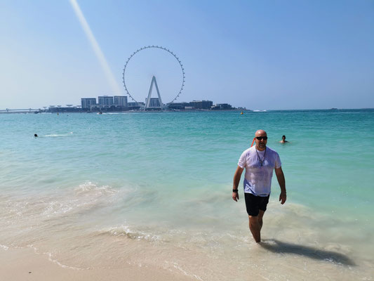 Heute ging es mit dem Hop-On-Hop-Off-Bus ans Meer. Unseren ersten Stopp legten wir am Atlantis ein. Ganz schön beeindruckend, überhaupt die ganze Palmeninsel. Weiter ging es dann zur Dubai-Marina. Von hier sind wir zum JBR-Beach gelaufen und haben im 28 Grad warmen Wasser gebadet. Auf dem Weg zur nächsten Haltestelle kamen wir tatsächlich an einem Pelzladen vorbei 🤣. Die Winter scheinen hier kalt zu werden. Weiter gings dann zur Mall of Emirates. Hier wurden schon die ersten Mitbringsel gekauft. Ich weiß gar nicht, warum Peter meine Tüte nicht tragen wollten 😂. Von dort ging es dann mit dem Bus wieder zurück zum Ausgangspunkt der Tour. Während der Fahrt hatte man super Aussichten auf die beeindruckende Architektur von Dubai. Es war eine schöne Tour aber auch ganz schön anstrengend. Wir sind 14 km gelaufen 😱. Am Abend haben wir dann noch die Aussicht aus unserem Zimmer auf die Skyline bei einem kleinen Absacker genossen.