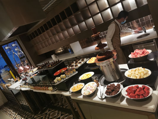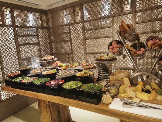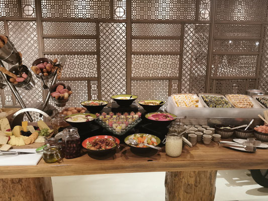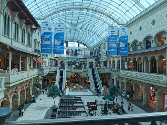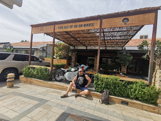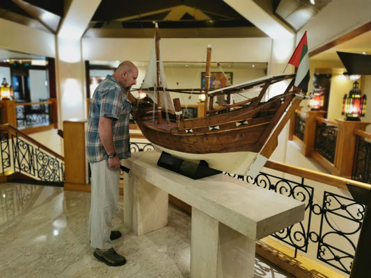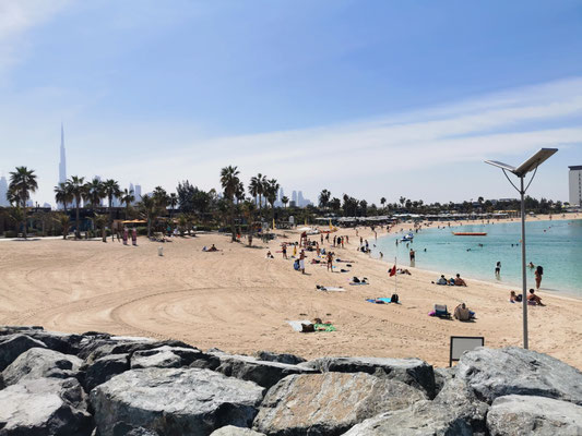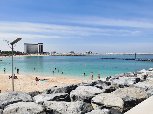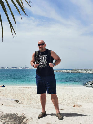 Heute war Strandtag angesagt. Dazu ging es mit dem Taxi zum La Mer Beach. La Mer ist ein Szeneviertel, welches sich die Küste lang zieht. Es gibt viele kleinere Geschäfte und unglaublich viele Restaurants. Dazu kann man hier Wassersport jeglicher Art machen. Es gibt auch einen kleineren Wasserpark mit Rutschen, den man besuchen kann. Wir haben ein Bad im persischen Golf vorgezogen und sogar ein schattiges Plätzchen unter einer Palme gefunden. So ließ es sich aushalten und wir konnten entspannt die Wärme und das Meer genießen. Anschließend haben wir einen Streifzug durch das Viertel unternommen. Man sieht viel Graffiti und Kunst aus alten Dingen. Es wirkt alles sehr urban. Wir haben uns einfach treiben lassen. Dabei sind wir an einem Biker-Café vorbeigekommen und zum Schluss in der Mercato-Mall gelandet. Diese ist irgendwie italienisch angehaucht und wirkt im Vergleich zu den anderen riesigen Malls fast ein bisschen gemütlich 🤣. Freitags Abends ist in Dubai brunchen angesagt. Also gesagt getan. Über Groupon haben wir den "Superbrunch" im Radisson gebucht (tatsächlich inkl. alkoholischer Getränke wie Wein, Bier, Whiskey und Wodka). Und was sollen wir sagen, der Brunch war super und hat nen ziemlich cooles Konzept. Die haben hier in dem Hotel 6 Restaurants und es gibt aus allen Restaurants Anteile am Buffet. Also Chinesisch (Knoblauchfisch, Chili-Hähnchen), Japanisch (geiles Sushi), französisch (richtig leckeres rosa gebratenes Roastbeef), indisch (Tandoori-Chicken 😋), italienisch (die machen deine Nudeln nach Wunsch frisch fertig), arabisch (lecker Lamm) und diverse gemischte Vorspeisen und unglaubliche Desserts. Es war ein wirklich toller Abend.