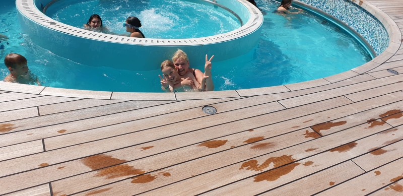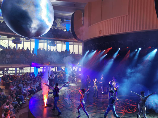 Heute war unser 1. von 2 Seetagen. Also hieß es erst einmal ausschlafen, dann frühstücken und anschließend das Schiff erkunden. Ganz schön groß und anders als die anderen Schiffe, auf denen ich bisher gefahren bin. An Bord sind 3.600 Personen und davon 1.200 Kinder 🙈. So ist das halt, wenn man in den Sommerferien fährt 😉. Am Nachmittag waren wir baden und rutschen, im Casino (verbotenerweise mit Gustav 😱😅) und haben an Deck relaxt. Abends ging es dann zur Aida Prime Time mit dem Kapitän und anschließend haben wir uns die Rock-Show angesehen. Das sind wirklich tolle Künstler an Bord! Mal wieder sind wir dann spät abends müde ins Bett gefallen.