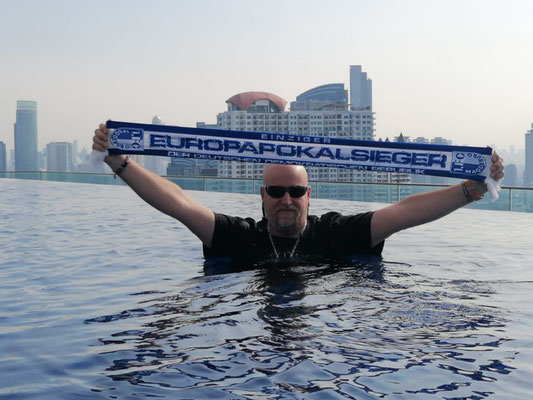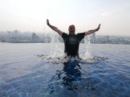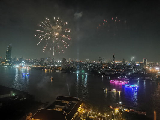 Unser erster Tag in Bangkok. Nach der mittlerweile zwangsläufigen Nudelsuppe zum Frühstück (ich liebe es einfach 😍), ging es erstmal in den Pool. Immer wieder ein traumhaftes Erlebnis bei diesem Ausblick auf die Skyline von Bangkok im Pool planschen zu können. Danach hielt uns nichts mehr im Hotel und wir ließen uns in Bangkok treiben. Von einem Straßenrand zum nächsten. Natürlich gab's auch wieder einen Somtum und ein gut gekühlten Bier! Zum Schluss ging es dann auf einer abenteuerlichen Fahrt mit dem TukTuk zurück zum Hotel. Wir sind gerade noch rechtzeitig angekommen, um ein tolles Feuerwerk über dem Fluss sehen zu können.