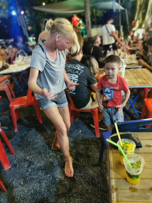 Heute wurden wir von strömenden Regen geweckt. Eigentlich sollte es mit dem Speedboot in Richtung Khanom gehen, wo man mit Glück rosa Delfine beobachten kann. Leider machte uns das Wetter einen Strich durch die Rechnung und der Ausflug wurde abgesagt. Stattdessen haben wir uns alle ordentlich durchkneten und drehen lassen. Herrlich! Am Mittag ging es ein kleines Stück am Strand entlang zur Jamaica-Beachbar. Ein echter Geheimtipp, da sie sehr versteckt liegt aber traumhafte Ausblicke, super leckeres Essen und vor allem ein gutes Angebot an Cocktails bietet. Am Abend ging es dann zum Nachtmarkt ins Fisherman's Village. Einfach nur irre, was hier angeboten wird. Alles denkbare an Streetfood. Cocktails ohne Ende, natürlich die normalen Marktwaren und Livemusik. Uns hat es sehr gut gefallen und es gab auch den einen oder anderen Mango-Mojito 😜.