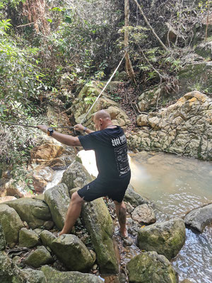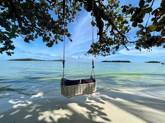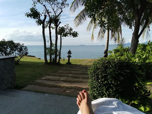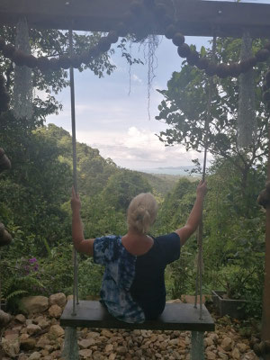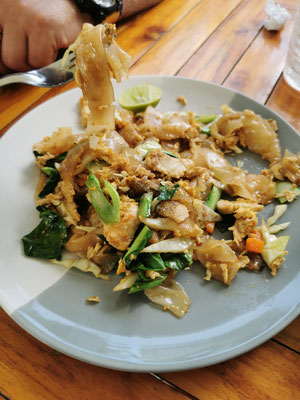 Heute ging es mit dem Roller ins Hinterland der Insel, zum Tan Rua Waterfall. Der Weg dorthin führt mitten durch den Urwald, teilweise über Hängebrücken, die in die Baumkronen gebaut wurden. Der Weg ist echt anstrengend und man kommt ordentlich ins schwitzen. Aber es lohnt sich wirklich. Man kommt zu verschiedenen Stufen des Wasserfalls und kann sich in kleinen Becken davor zumindest die Beine abkühlen. Es war einfach herrlich. Anschließend ging es mit dem Roller zurück an den Strand und auf dem Weg gab es natürlich in einer Straßenküche ein wie immer sehr leckeres Essen. Danach hieß es relaxen auf der Terrasse und am Abend ging es vor an die Hauptstraße zum Abendessen.