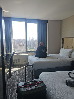 Wir sind endlich da! Angekommen sind wir am Flughafen Newark mit einer Stunde Verspätung gelandet. Von da ging es mit dem Airtrain und dem Zug zur Pennstation in Manhattan (der Zug hält tatsächlich auch an einer Pennstation in Newark, also hieß es aufpassen und nicht zu früh aussteigen 😅). Unser Hotel ist nur 3 Minuten von der Pennstation und damit auch vom Madison Square Garden entfernt. Der nette Herr an der Rezeption hat uns ein kostenloses Zimmerupgrade gegeben (juhu 😍), so dass wir jetzt ein Zimmer in der 22. Etage mit Blick auf den Freedomtower (one World Center) haben. Einfach nur traumhaft. Am Abend haben wir uns etwas durch die Stadt treiben lassen (naja, es waren trotzdem noch ca. 18.000 Schritte) und haben die Stadt auf uns wirken lassen. Einfach nur gigantisch. Am Abend sind wir erledigt ins Bett gefallen und mit Blick auf die nächtliche Skyline eingeschlafen.