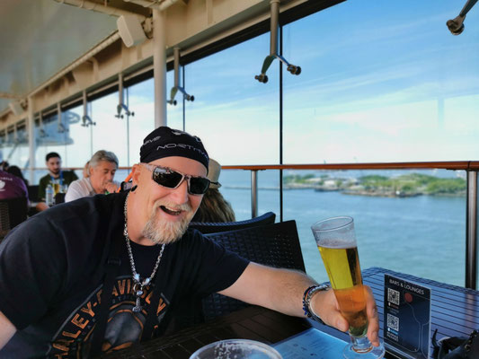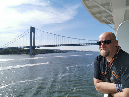 Nach einem ausgiebigen Frühstück ging es heute mit dem Transfer zum Hafen in Brooklyn um mit der MSC Meraviglia Richtung Bahamas zu cruisen. Aber erstmal hieß es Schlange stehen für den Check In! Also das können die Amis irgendwie nicht wirklich gut organisieren, sei es bei der Immigration oder halt hier. Allerdings ist es auch eine logistische Meisterleistung innerhalb von 6 Stunden 4.500 Personen von Bord und 4.500 wieder an Bord zu bringen. Aber das schaffen Aida und Mein Schiff definitiv besser. Egal, nach ca. 2,5 Stunden haben wir es dann doch an Bord geschafft und konnten in unsere Kabine. Und dann ist das Schiff auch schon ausgelaufen. Vorbei an der Skyline von New York und an Miss Liberty. Wir konnten alles entspannt mit einem Prosecco auf unserem Balkon verfolgen und es war wirklich großartig! Auch die Fahrt durch die Verazzanobridge war sehr schön. Danach hieß es erstmal ankommen und am Pool gab's das erste Bier. Übrigens empfiehlt es sich ein Getränkepaket zu buchen, ein Bier (und zwar ein kleines) kostet sonst 7,50 $. Wir hatten Glück, bei unserer Buchung gab's das Getränkepaket gerade kostenlos dazu 😅. Am Abend sind wir dann sehr lecker essen, man merk, dass es ein italienisches Schiff ist, es gibt hausgemachten Mozzarella (und der ist richtig lecker!), italienische Salami, hausgemachte Nudeln, hervorragende Pizza und und und. Wir waren im Bedienrestaurant und haben uns ein wirklich sehr gutes Primerib schmecken lassen. Auch der Wein dazu ist hervorragend gewesen. An Bord sind ca. 95 % Amerikaner und die Bordsprache ist englisch. Man kommt aber gut klar 😉. Morgen ist Seetag und den werden wir nutzen, um das Schiff zu erkunden.