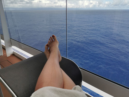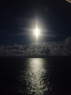 Es geht wieder zurück Richtung New York. Heute war Seetag und wir haben diesen zum chillen und erholen genutzt. Wir waren nochmal das Schiff erkunden und haben die verschiedenen Bars getestet 😂. Außerdem haben wir 20 $ im Casino verspielt 😱. Naja immerhin habe ich beim Roulette fast eine Stunde lang mit 10 $ Einsatz gespielt und war zwischendrin mal bei 25 $ 🙈😂😅. Das Essen an Bord ist super. Sowohl im normalen Bedienrestaurant als auch am Buffet. Wir haben gar nicht das Bedürfnis gehabt, in die Spezialitätenrestaurants für nen ordentlichen Aufpreis zu gehen. Den Abend haben wir bei einem wunderbaren Mond auf unserem Balkon.
