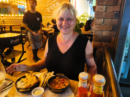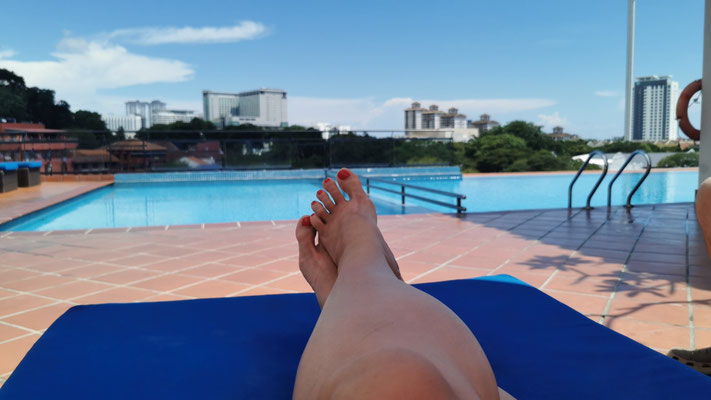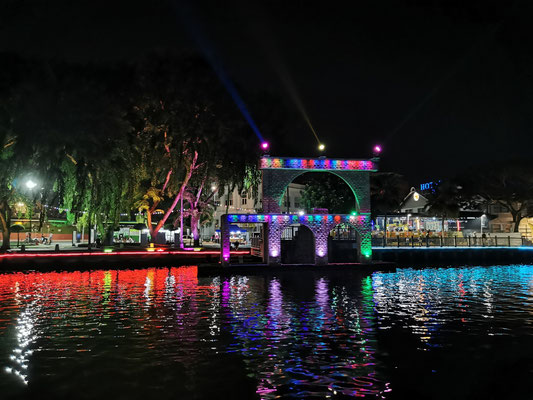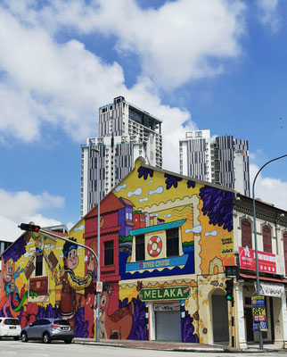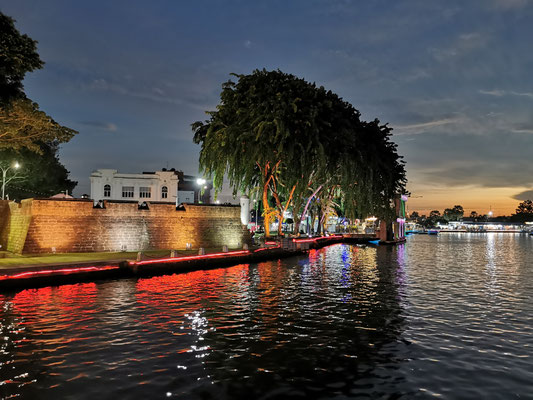 Heute früh hieß es ausschlafen, dann eine Runde im Pool schwimmen und danach entspannt frühstücken. Anschließend haben wir zu Fuß die Stadt erkundet. Melaka ist wirklich sehenswert. Uns haben es vor allem die teilweise gut erhaltenen oder mit viel Liebe restaurierten alten Häuser angetan und die bunten Farben in der ganzen Stadt. Dazu farbenprächtige Wandmalereien und sehr freundliche und vor allem friedliche Einwohner. Hier ruft der Muezin vom Minarett, direkt neben der christlichen Kirche zum Gebet, 10 m weiter steht ein hinduistischer Tempel und direkt um die nächste Ecke findet man einen chinesischen Tempel. Diese Mischung der Kulturen zieht sich durch alle Bereiche, z. B. werden in Melaka 84 verschiedene Sprachen gesprochen und auch beim Essen zeigt sich deutlich die Vielfalt 😍. Die vielen tollen Eindrücke haben wir dann bei einem erfrischendem Bad im Pool sacken lassen, bevor wir uns ins abendliche Getümmel gestürzt haben. Wie immer muss Peter auf jeder Reise einen Whopper testen. Und bei einem Whopper mit Knoblauchmayo und geröstetem Knoblauch konnte er nicht nein sagen 🤣. Immerhin hat er geschmeckt 😉. Auch am Abend leuchtet die Stadt in bunten Farben und ist einfach nur schön.