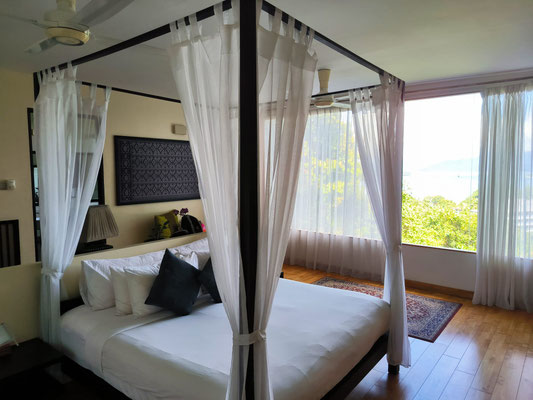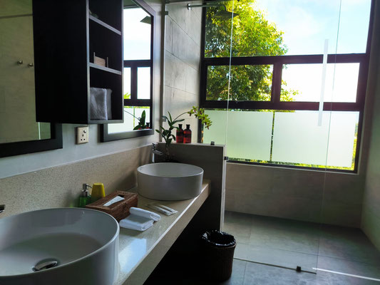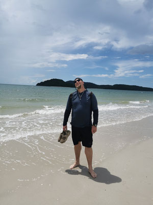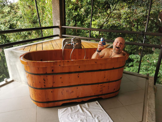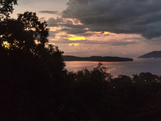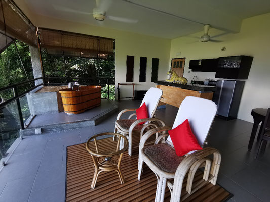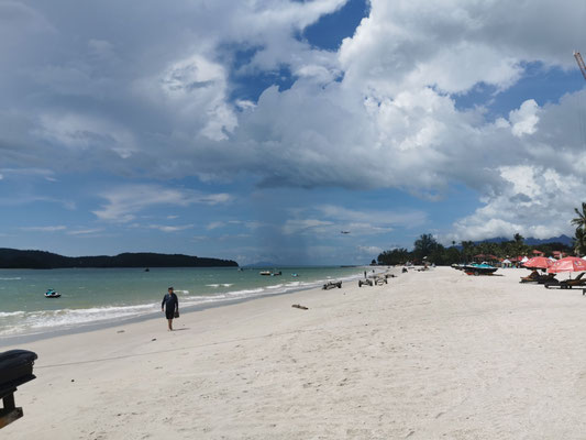 Heute hieß es früh aufstehen und ab zum Flughafen. Der Flughafen von Kuala Lumpur ist wirklich schön, keine Ahnung, warum wir so etwas nicht hinbekommen. Alles läuft ruhig und reibungslos. Angekommen in Langkawi haben wir uns ein Grab bestellt und sind zu unserer Unterkunft, dem Ambong Rainforest Retreat gefahren. Hier wurden wir mit einem kaltem Drink und einer Massage empfangen. Einfach toll. Und unsere Wohnung ist auch super. Mitten im Regenwald, mit Holzzuber und traumhaftem Ausblick von der Terrasse. Am Nachmittag haben wir uns einen Scooter für die nächsten Tage gemietet und dann ging es erstmal zum Cenang-Beach und ab ins Meer. Natürlich wurde lecker gegessen und am Abend noch der Badezuber getestet.