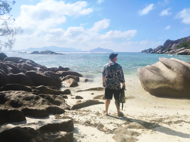 Heute war eine Tour mit dem Glaskajak angesagt. Mit dem Rädern ging es zum Nationalpark Anse Source D'argent. Hier kann man unter anderem Vanilleplantagen und Schildkröten sehen aber das Highlight ist der Strand. Dieser ist von riesigen Granitfelsen umgeben und einer der meist fotografierten Strände der Welt. Mit dem Glaskajak ging es erstmal aufs Meer hinaus. Dabei konnten wir wunderbar die Korallen und Fische unter sich beobachten. Vom Wasser aus, kann man übrigens auch die schönsten...